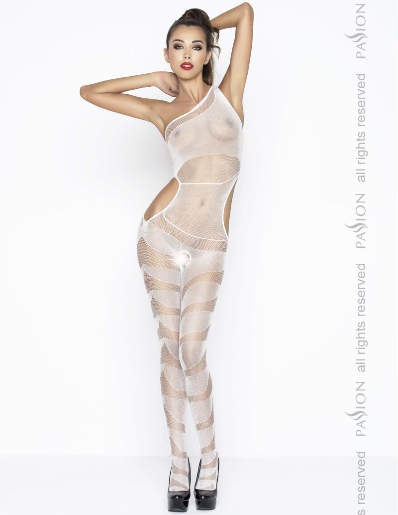 Полупрозрачный комбинезон с узором под зебру и доступом - стильный, дерзкий и невероятно сексуальный наряд. Одно плечо остается соблазнительно обнаженным, второе - покрытым элегантной сеткой. Чередование более плотных и светлых полос зрительно делает силуэт более стройным. Доступ к промежности в этом наряде открыт - заниматься любовью в комбинезоне понравится обоим.