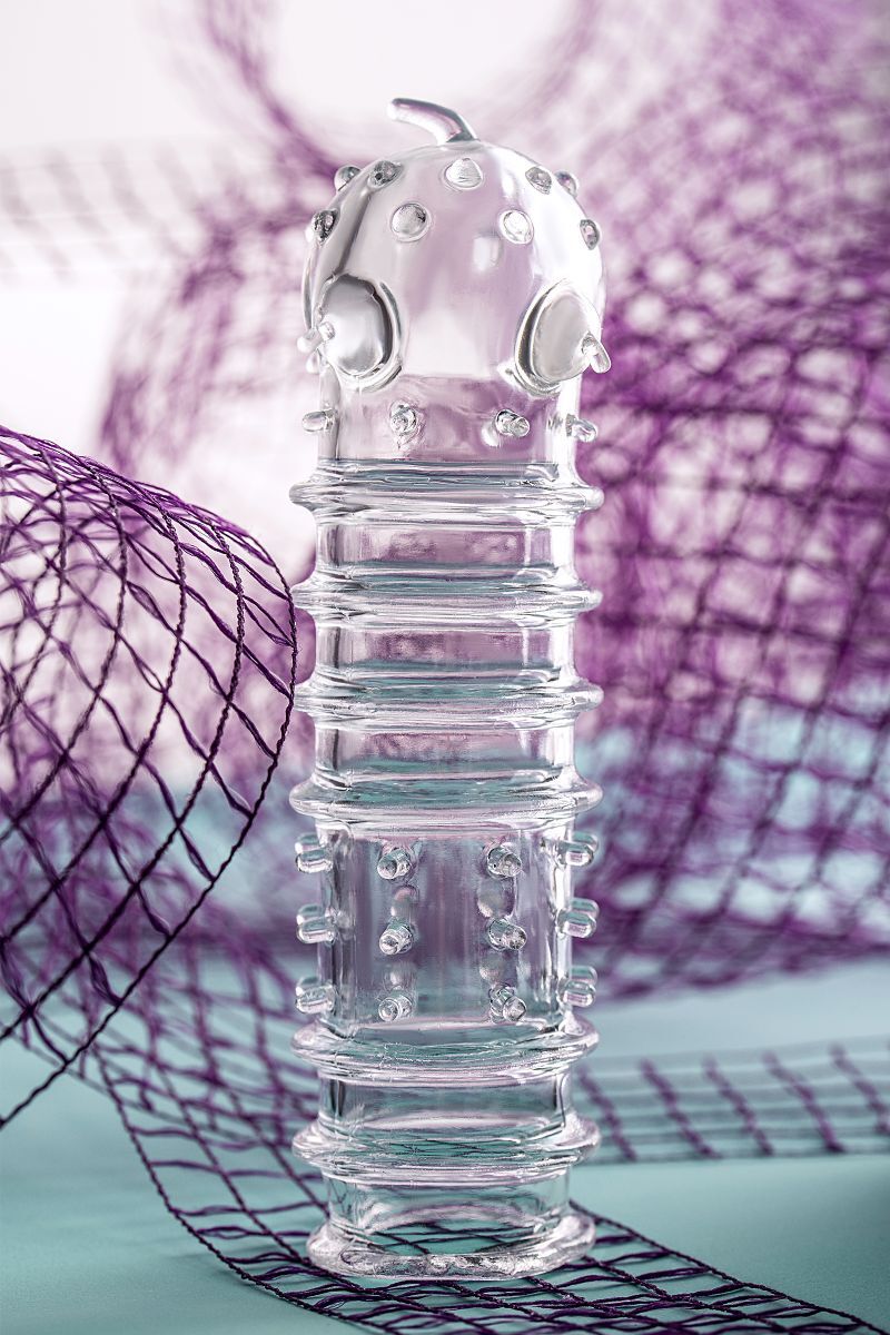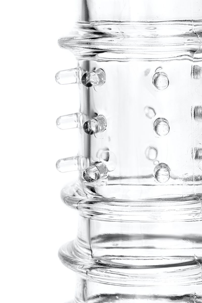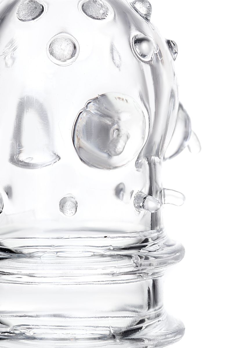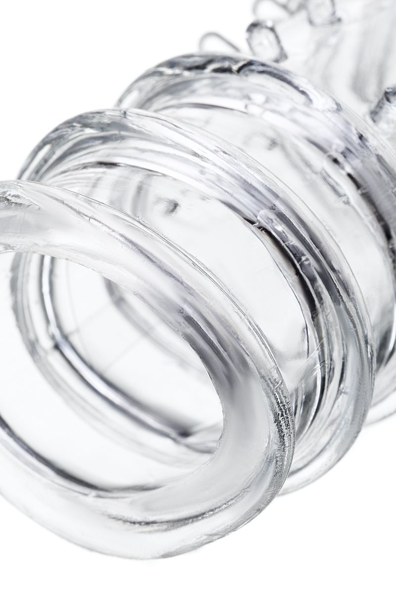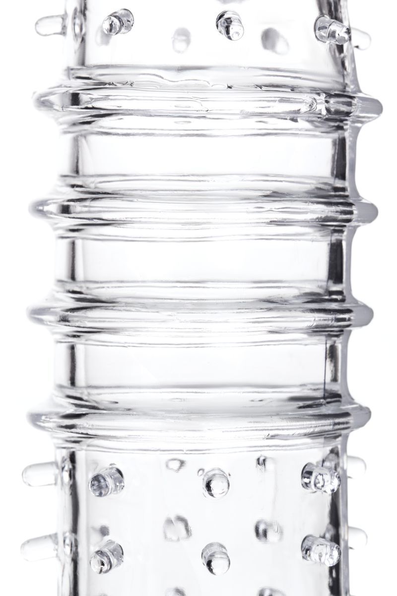 Прозрачная насадка на пенис TOYFA A-Toys с ребрами и точками - 15,3 см.