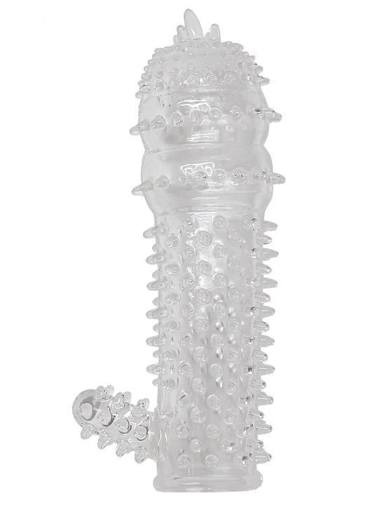 Насадка шипастая, с язычком, закрытая, прозрачная, EROTICON XL PENIS. Эротическая насадка с разнообразной рифленой поверхностью позволяет доставить незабываемое удовольствие и максимально ускорить наступление оргазма у любимой женщины. Этот потрясающий эффект достигается путём дополнительной стимуляции стенок влагалища за счёт нежных шипов и разнообразного рельефа поверхности.