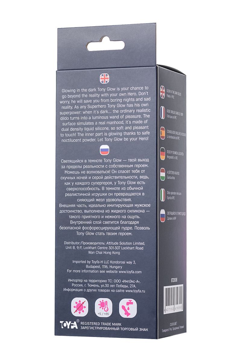 Светящийся в темноте Tony Glow — твой выход за пределы реальности с собственным героем. Можешь не волноваться! Он спасет тебя от скучных ночей и серой действительности, ведь, как у каждого супергероя, у Tony Glow есть сверхспособность. В темноте из обычной реалистичной игрушки он превращается в сияющий жезл удовольствия. Внешняя часть, идеально имитирующая мужское достоинство, выполнена из жидкого силикона — такого приятного и нежного на ощупь. Внутренний слой светится благодаря безопасной фосфоресцирующей пудре. Позволь Tony Glow стать твоим героем. Рабочая длина - 14,5 см.