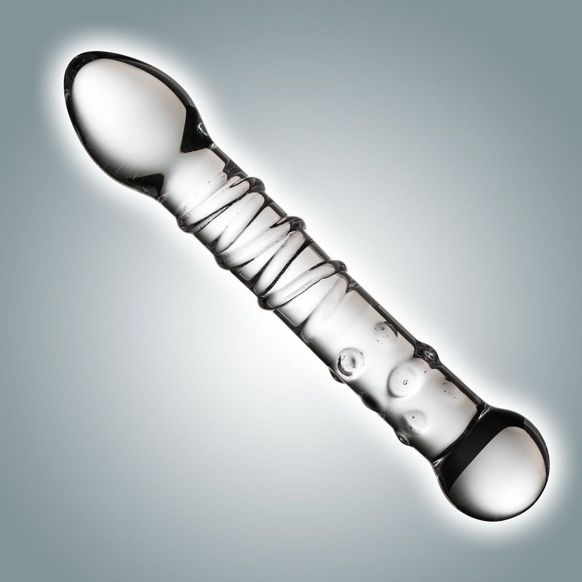 Стимулятор выполнен из кристально чистого закалённого стекла, с выраженным рельефом из спирали и пупырышек и крупными головками на основаниях. Прикосновения этого фаллоса вызывают бурю ярких эмоций! Особую изюминку интимным играм добавляет возможность разбавить процесс приятными экспериментами, основанными на смене температур: его можно нагреть или охладить под струёй воды. Совместим со смазками на любой основе. Рабочая длина - 17 см.