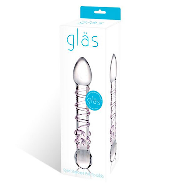 Двухголовый короткий фаллос из прозрачного толстого стекла с большой объемной спиралью розового оттенка, у круглого конца тело фаллостимулятора покрыто большими выпуклыми массажными точками. Общая длина жезла: 18 см. Диаметр вытянутой головки: 3,5 см. Диаметр круглой головки: 3,7 см.