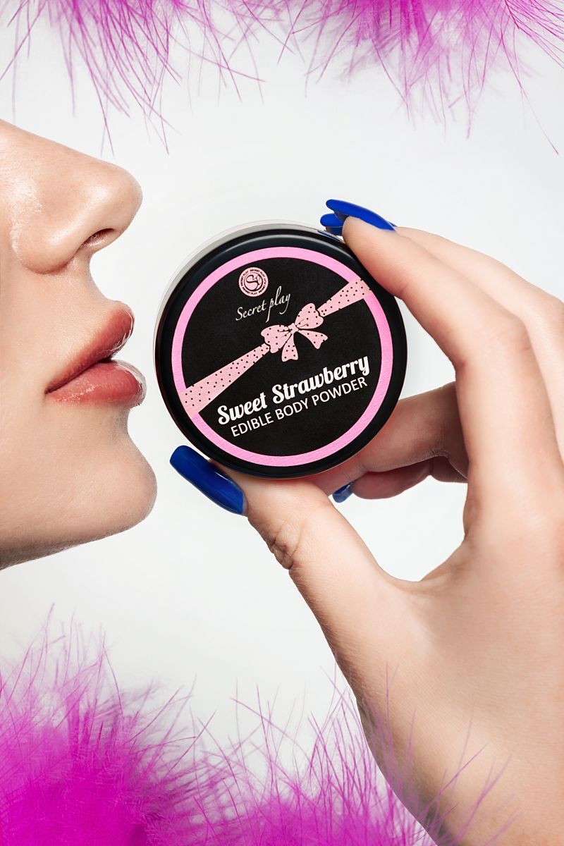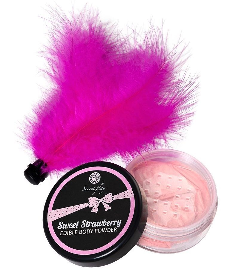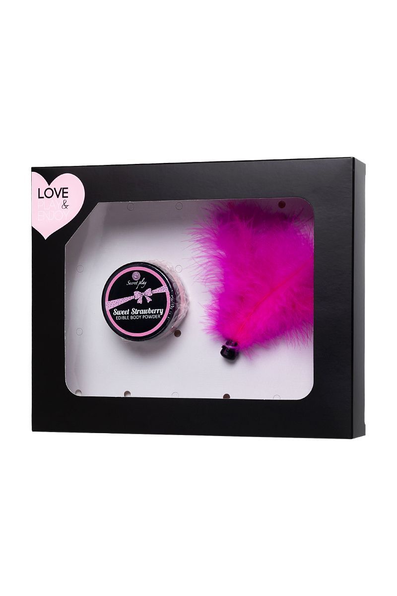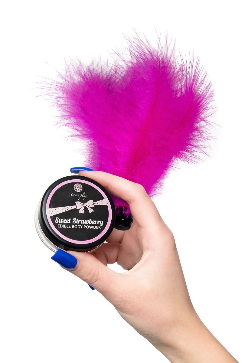 Новый способ развлечь и удивить друг друга – набор из пудры для тела, которую приятно слизывать и целовать, и щекоталки из перьев для чувственных ласк. STRAWBERRY EDIBLE BODY POWDER & FEATHER TICKLER от Secret Play – пудра с мягким вкусом, чтобы превратить вашего партнера в изысканное лакомство. Безграничное удовольствие – посыпать пудрой нежные участки тела и слизывать. Играйте мягкой кисточкой из перьев, стимулируя каждый уголок партнера – понравится вам обоим. Предложите партнеру оставить на своем теле любовный маршрут и двигайтесь по нему языком и губами, пока не останется следов, используйте для прелюдии или для оральных ласк. Безопасный состав для применения на любых участках тела с восхитительным вкусом и ароматом клубники. В комплекте: пудра с ароматом клубники, кисточка из перьев.