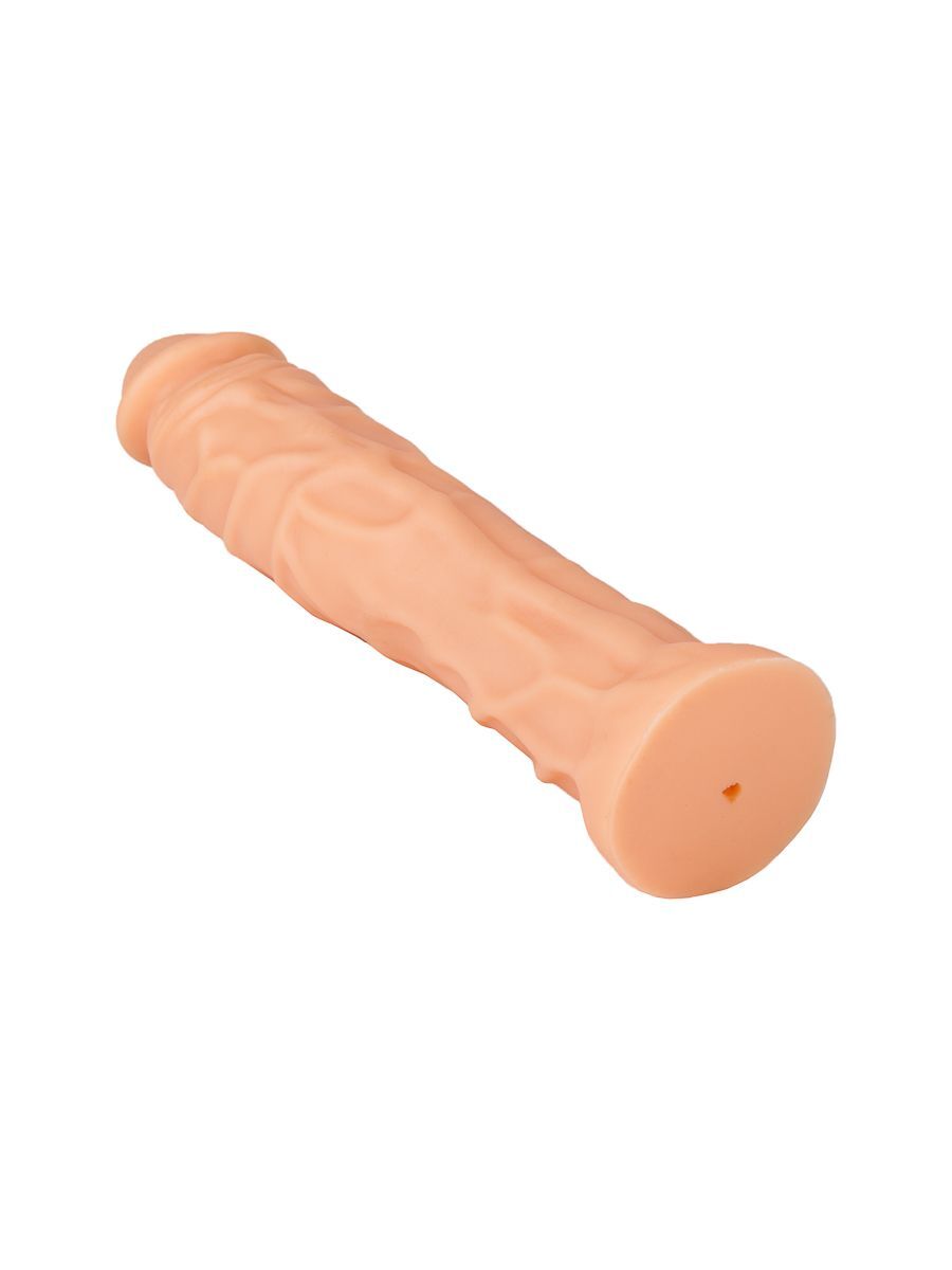 Его формы действуют на женщин возбуждающе: шутка ли, длинный ствол, который венчает аккуратная гладенькая головка из материала ПВХ-силикон . Испещрённый напряжёнными венками от головки и до основания, этот пустотелый фаллоимитатор телесного цвета обещает чувственный массаж вагинальных стеночек. И море удовольствия!