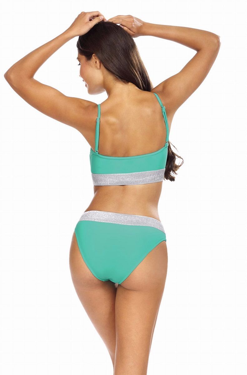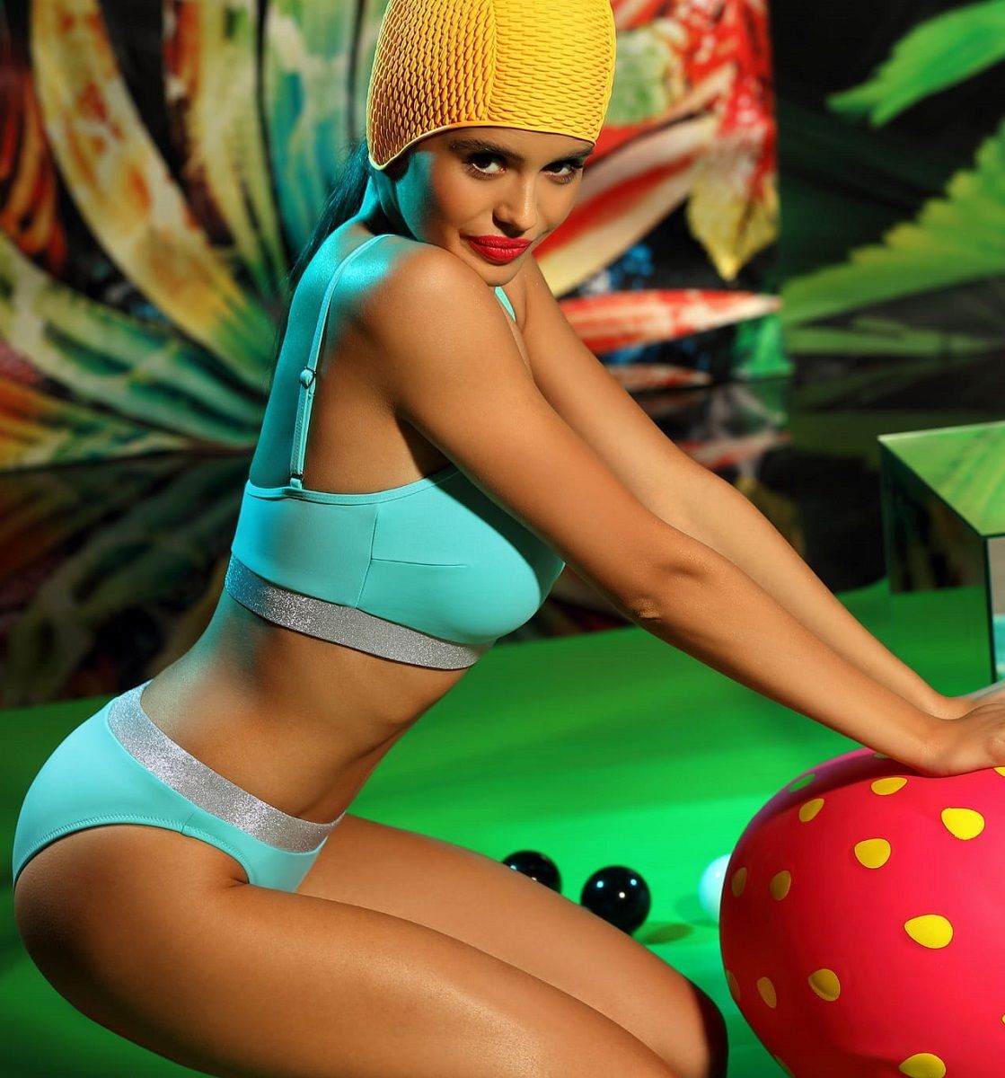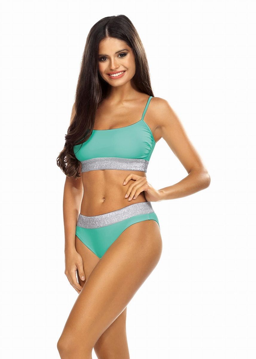 Купальник раздельный, топ на широких бретелях. Трусики слип на стрейч-подкладке со средней посадкой. На бюсте и трусах широкая эластичная резинка с серебряным люрексом. В комплекте: лиф, трусики. Внимание: европейские размеры! См. размерную сетку производителя.