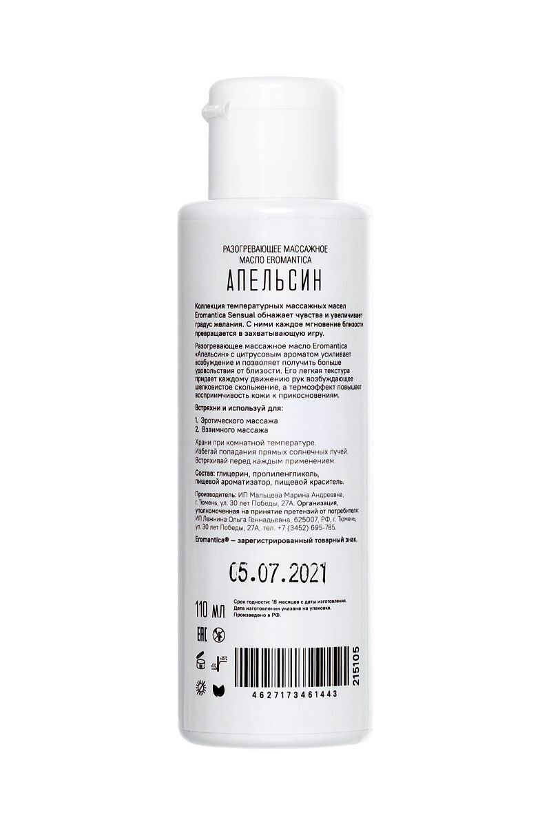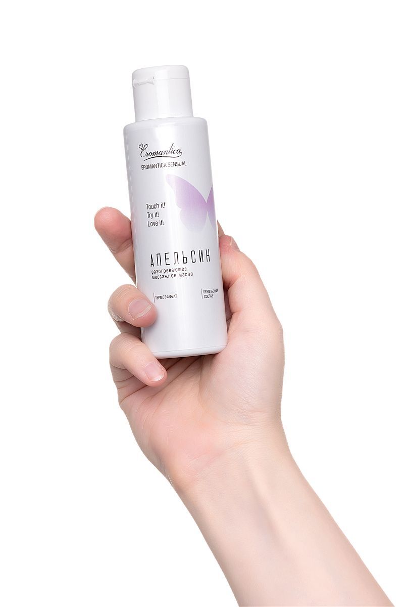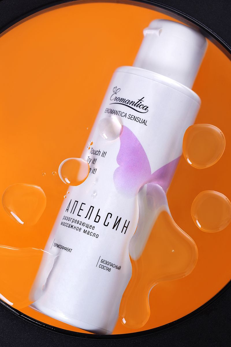 Коллекция температурных массажных масел Eromantica Sensual обнажает чувства и увеличивает градус желания. С ними каждое мгновение близости превращается в захватывающую игру. Разогревающее массажное масло Eromantica «Апельсин» с цитрусовым ароматом усиливает возбуждение и позволяет получить больше удовольствия от близости. Его легкая текстура придает каждому движению рук возбуждающее шелковистое скольжение, а термоэффект повышает восприимчивость кожи к прикосновениям. Сладкий вкус без горького послевкусия делает оральные ласки еще приятней и побуждает к исследованию тела партнера. Встряхни и используй для: -Эротического массажа: нанеси на чувствительные участки тела или отдельные эрогенные точки. Согрей их дыханием, чтобы партнер ощутил возбуждающее тепло. -Взаимного массажа: нанесите масло на эрогенные зоны, заводите друг друга горячим дыханием или взаимными поцелуями. -Оральных техник: нанеси небольшое количество масла, чередуй мануальные и оральные ласки. Храни при комнатной температуре. Избегай попадания прямых солнечных лучей. Встряхивай перед каждым применением.