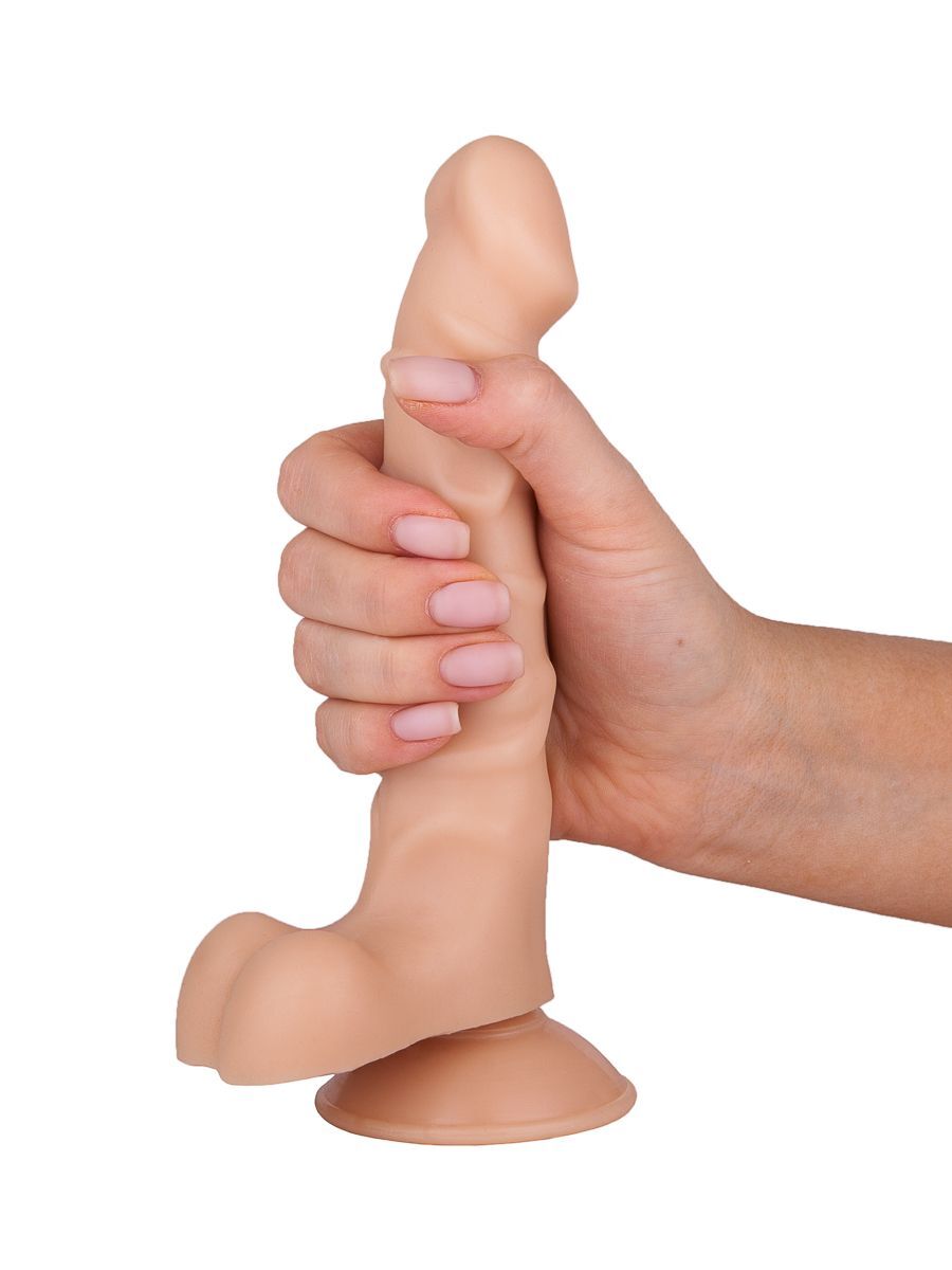 Этот крупный фаллоимитатор из материала ЭКОй способен доставить удовольствие даже искушенной в делах секса барышне. Благодаря своим размерам способен заполнить лоно полностью, погрузиться в него всем своим рельефным тельцем по самую мошонку. Загнутая головка будет воздействовать на переднюю стенку вагины, а значит, и на точку G – центр удовольствия. Для удобства использования на основании предусмотрена присоска, легко прилипающая к любой гладкой и твердой поверхности.