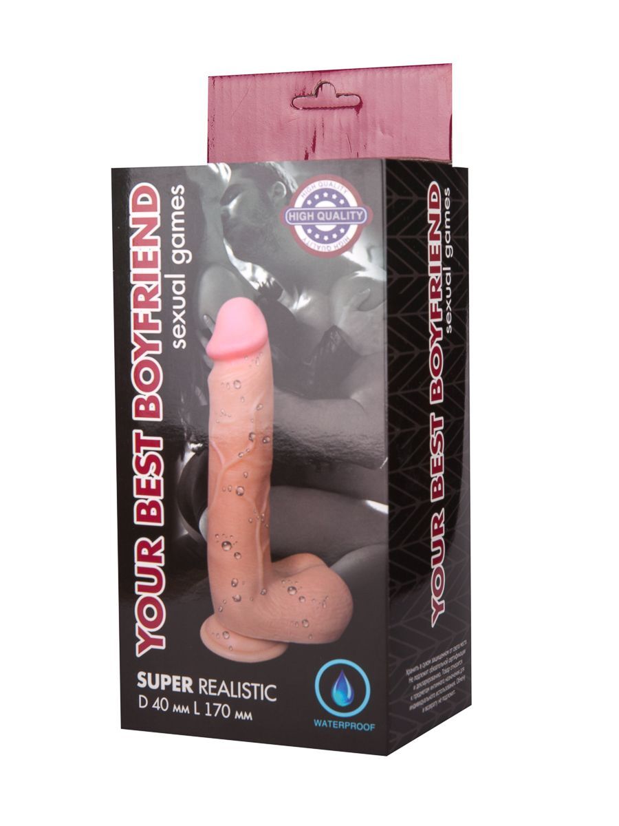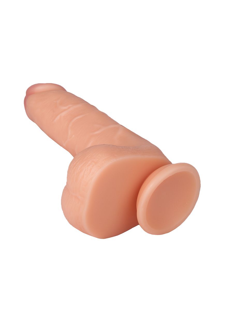 Реалистичный фаллоимитатор телесного цвета с мошонкой на присоске