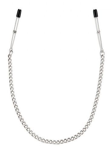Ощути себя богиней в спальне с помощью этой потрясающей цепи с зажимами сосков. Два регулируемых скользящих зажима подойдут вам для того, чтобы превратить чувственную игру в эротический небывалый сон, в то время как прикрепленная цепь свисает с вашего тела, дразня вас своим прохладным ощущением. Независимо от того, играете ли вы в одиночку или с партнером, это обязательный аксессуар, который доставит вам удовольствие.