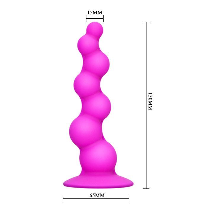 Анальный стимулятор с рельефной волнообразной формой состоит из 7 шариков различного диаметра. Такая форма позволяет максимально сильно стимулировать стенки ануса. Имеет в основании присоску, что позволяет использовать его на любой гладкой поверхности без помощи рук. Сделан из гладкого шелковистого силикона, очень приятного на ощупь. Водонепроницаем, что делает его привлекательным при использовании в душе или бассейне. Сам массажер компактного размера, можно взять с собой на отдых, он не займет много места, а его футуристическая форма не привлечет внимание, и вам не придется отвечать на вопрос о том, что это такое вы там везете! Минимальный диаметр - 1,5 см. Диаметр основания - 6,5 см.