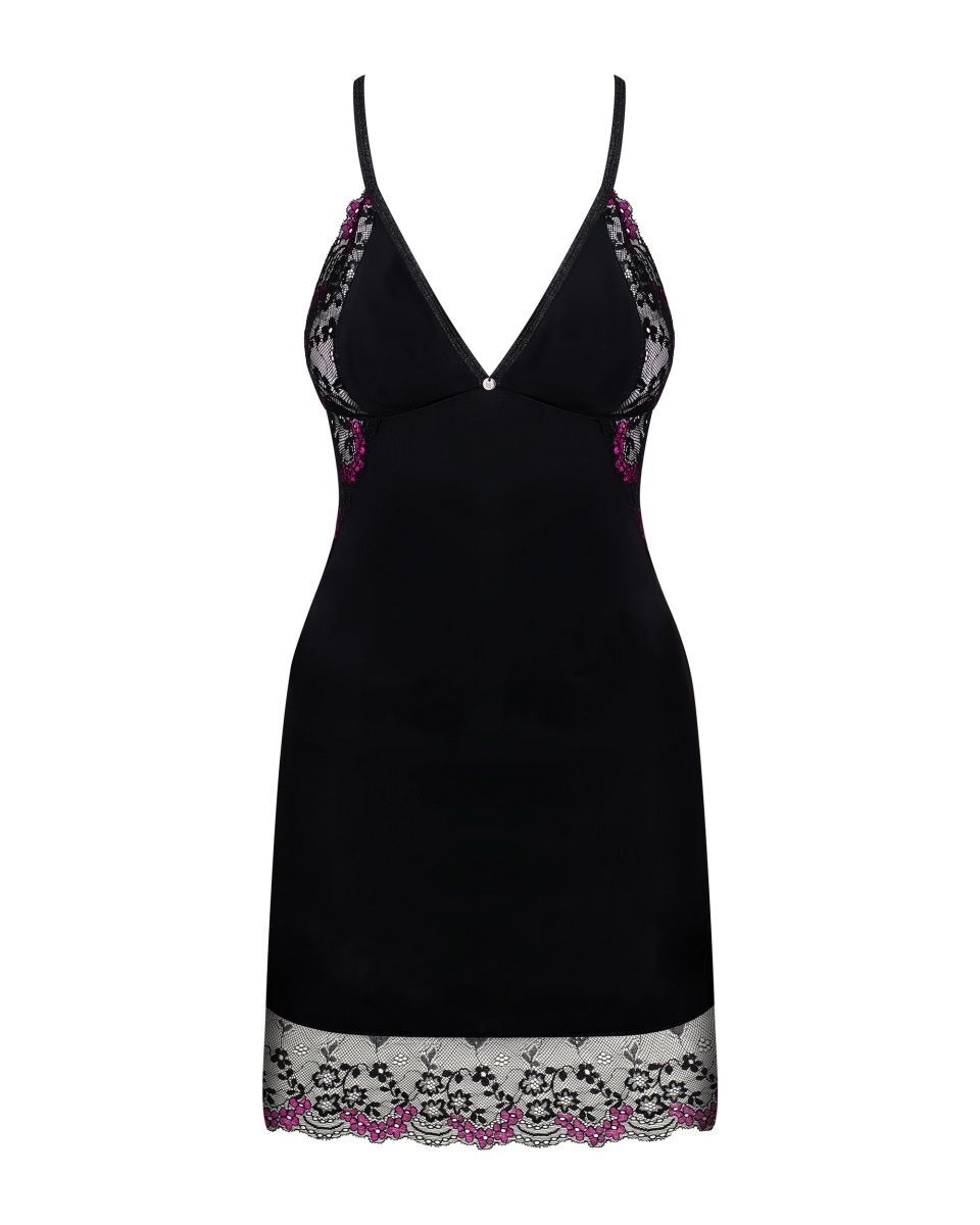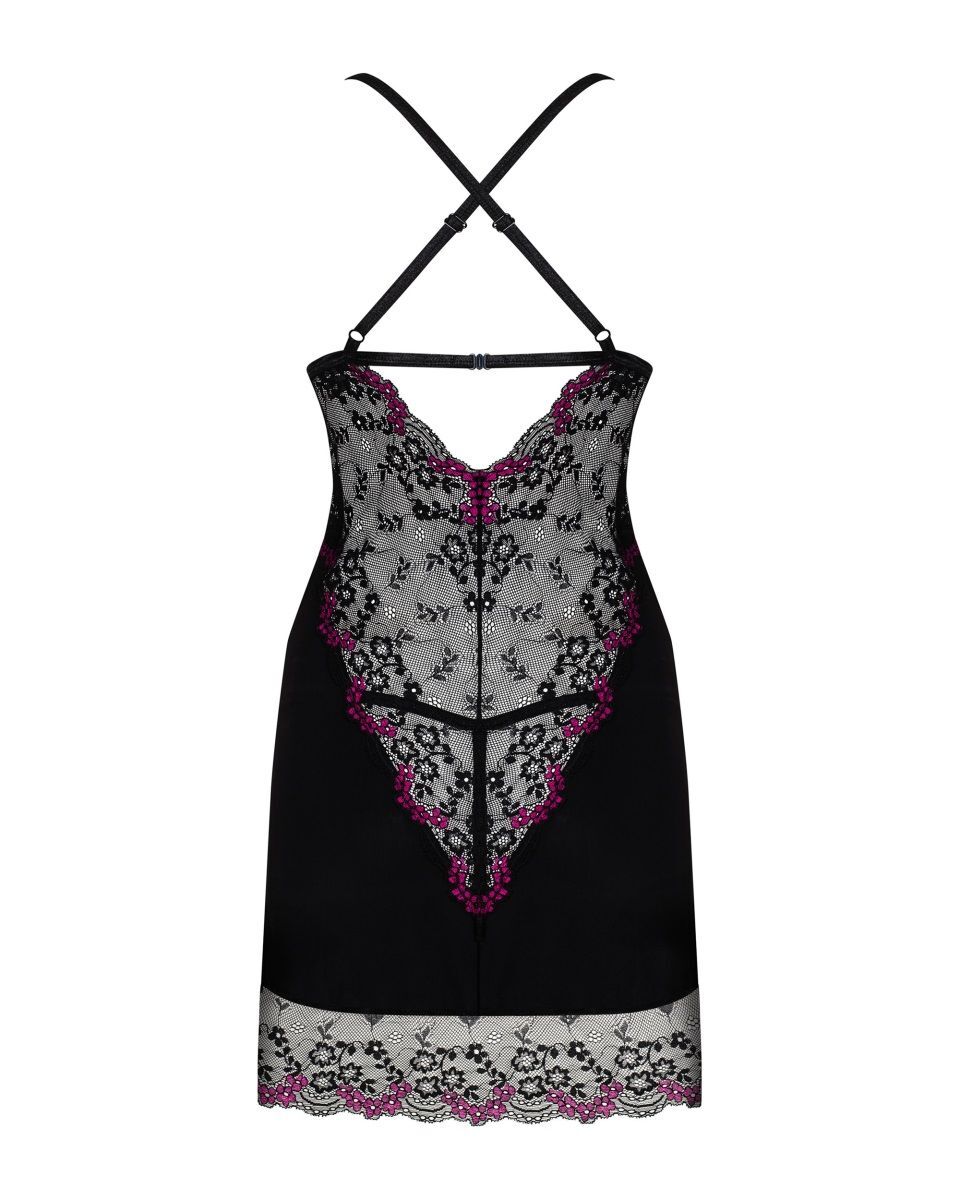 Очаровательная сорочка из коллекции Vanessme. Полотно сорочки из эластичной микрофибры, со вставками из кружевного полотна с орнаментом. Мягкий кружевной лиф, бретельки перекрещиваются на спине, регулируются по длине, на спине застежка. На спине V-образная соблазнительный вырез из кружевного полотна. В комплекте: сорочка и трусики.