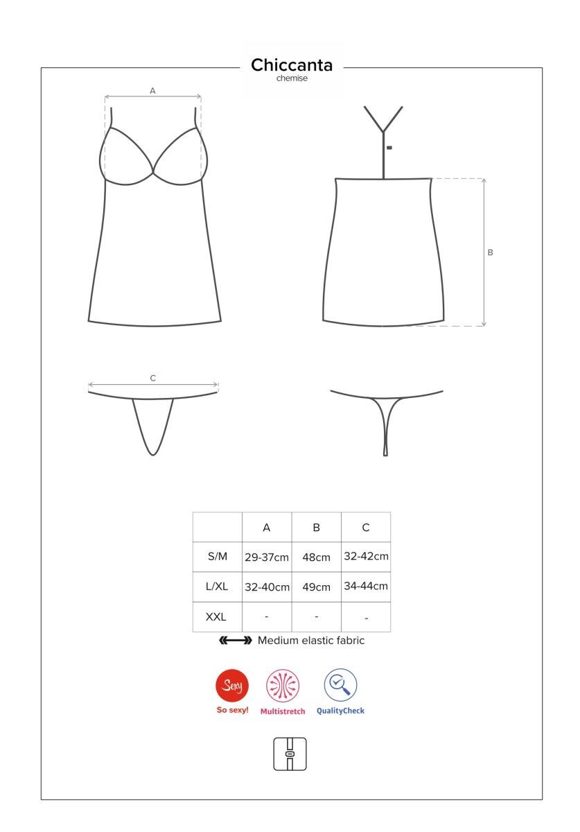 Кокетливая сорочка Chiccanta выполнена из эластичного материала в сочетании с очаровательным кружевом. Лиф сорочки мягкий без косточек, бретели регулируются по длине. В комплекте: сорочка и трусики-стринги.