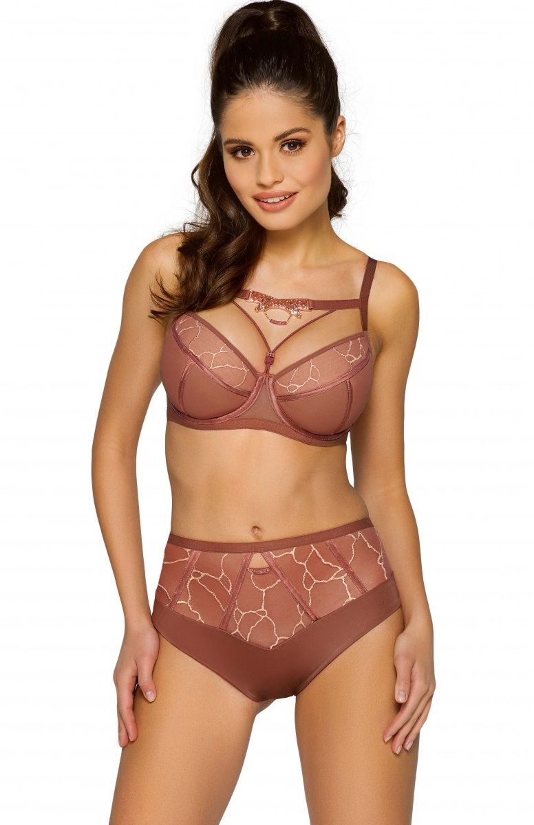 Трусики-бразилиана Savane спереди из эластичного трикотажного полотна, продублированного сеткой, со вставками из сетки с вышивкой люрексом. Утонченный шарм придают атласные ленты, отороченные люрексом. Спинка из сетки, сложенной вдвое. Ластовица проложена 100% хлопком.