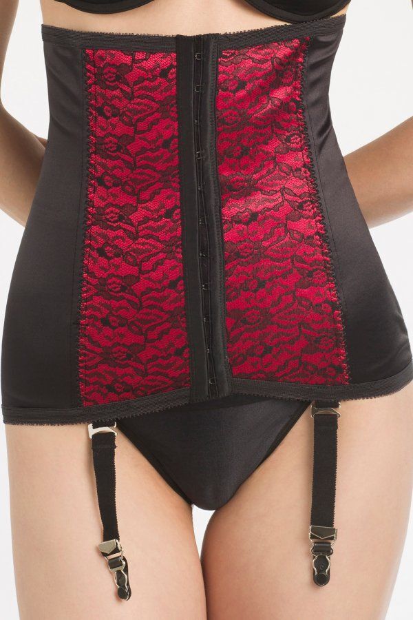 Корсетный пояс сильной степени коррекции. Пояс выполнен из шелковистой сатиновой блестящей ткани черного цвета и украшен красной кружевной вставкой на передней панели. Изделие очень красиво, сексуально и элегантно. Особый крой и высокотехнологичное выполнение круговых швов позволяет уменьшить объем талии на 2 размера. Корсетные косточки настолько удобны, что позволяют не только корректировать фигуру, но и распределять нагрузку на мышцы спины, облегчая повседневную жизнь. Фронтальная застежка на 12 крючках очень практична и позволяет телу двигаться, не ограничивая себя.