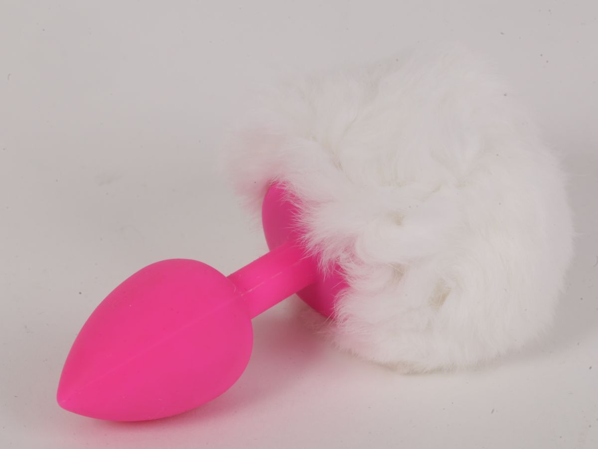 Розовая анальная пробка с белым хвостом  Задорный Кролик