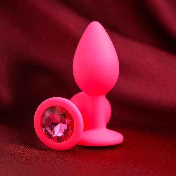 Розовая анальная пробка с кристаллом - 7,2 см.