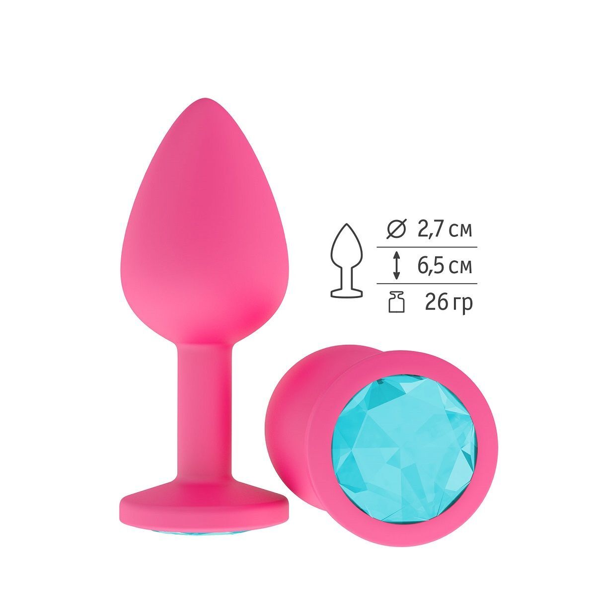 Гладенькая силиконовая пробка с кристаллом в ограничительном основании. Рабочая длина - 6,5 см. Вес - 26 гр.