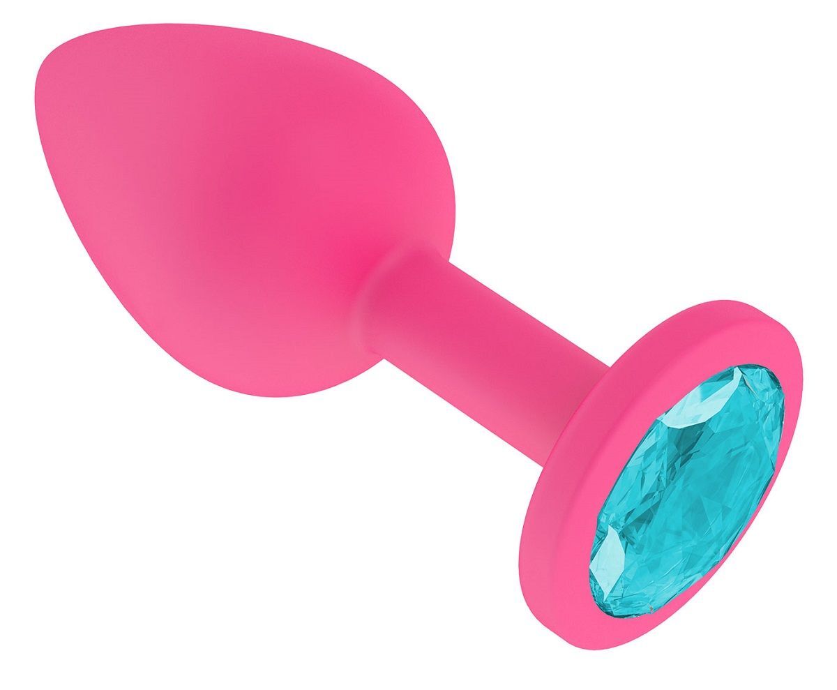 Розовая анальная втулка с голубым кристаллом - 7,3 см.