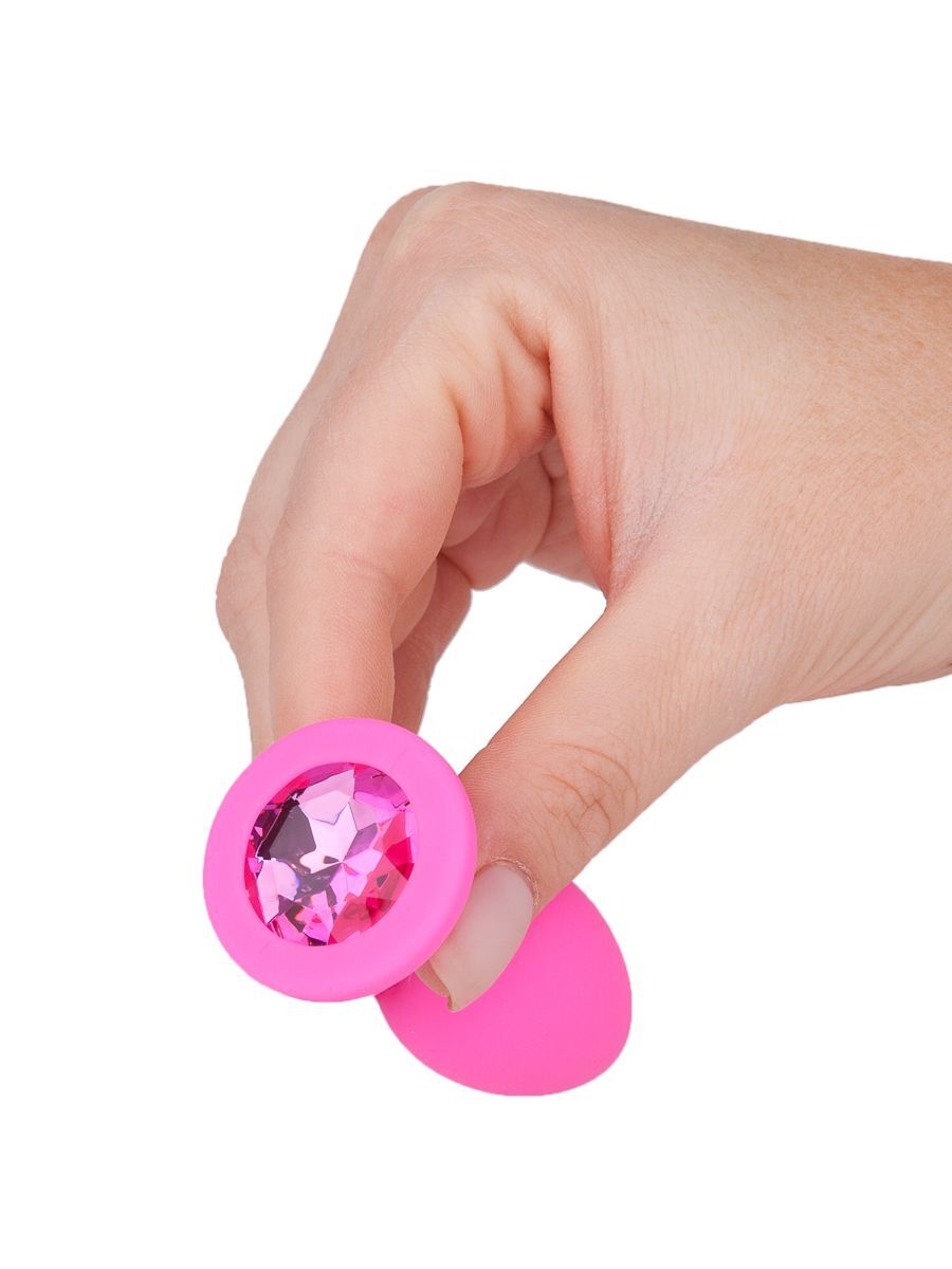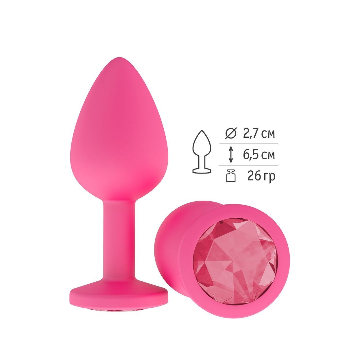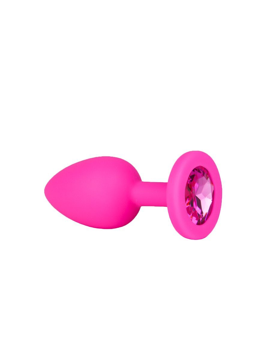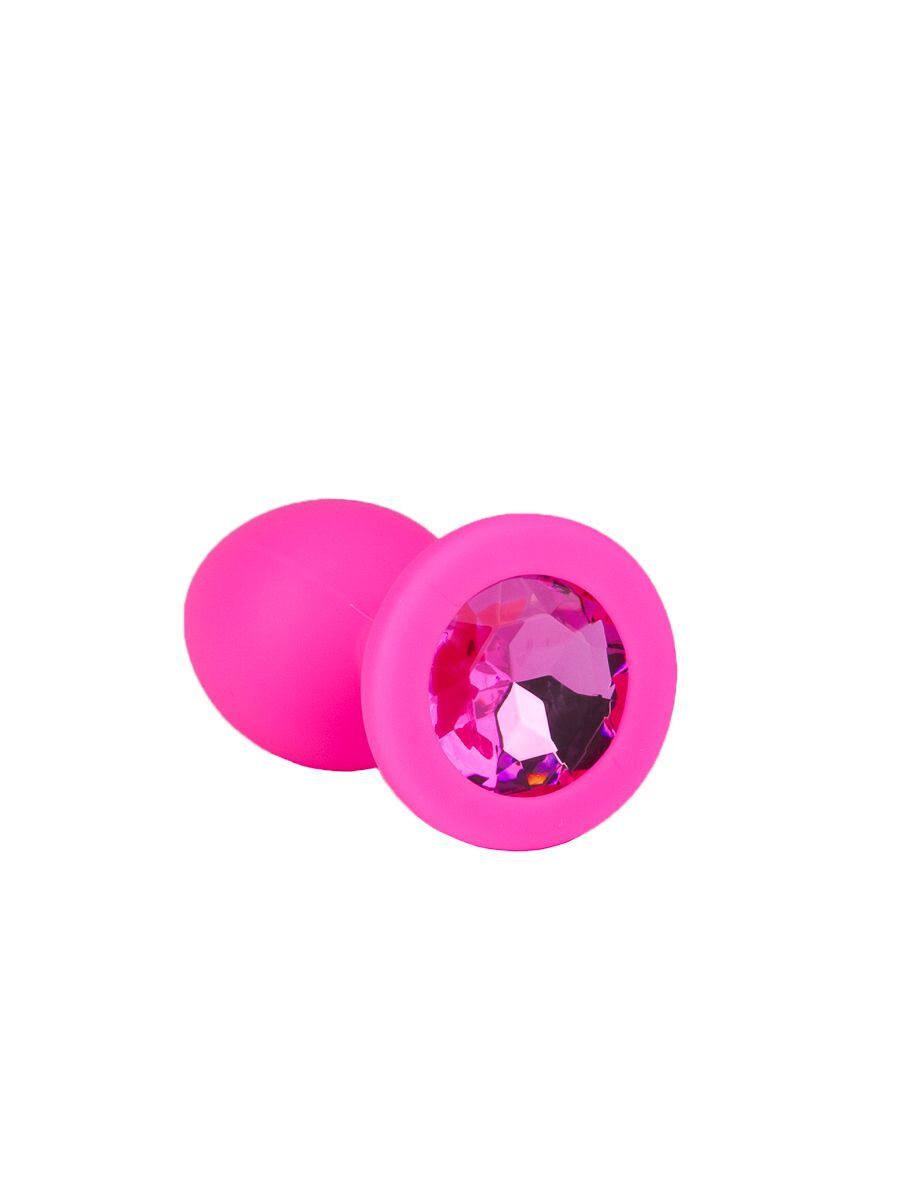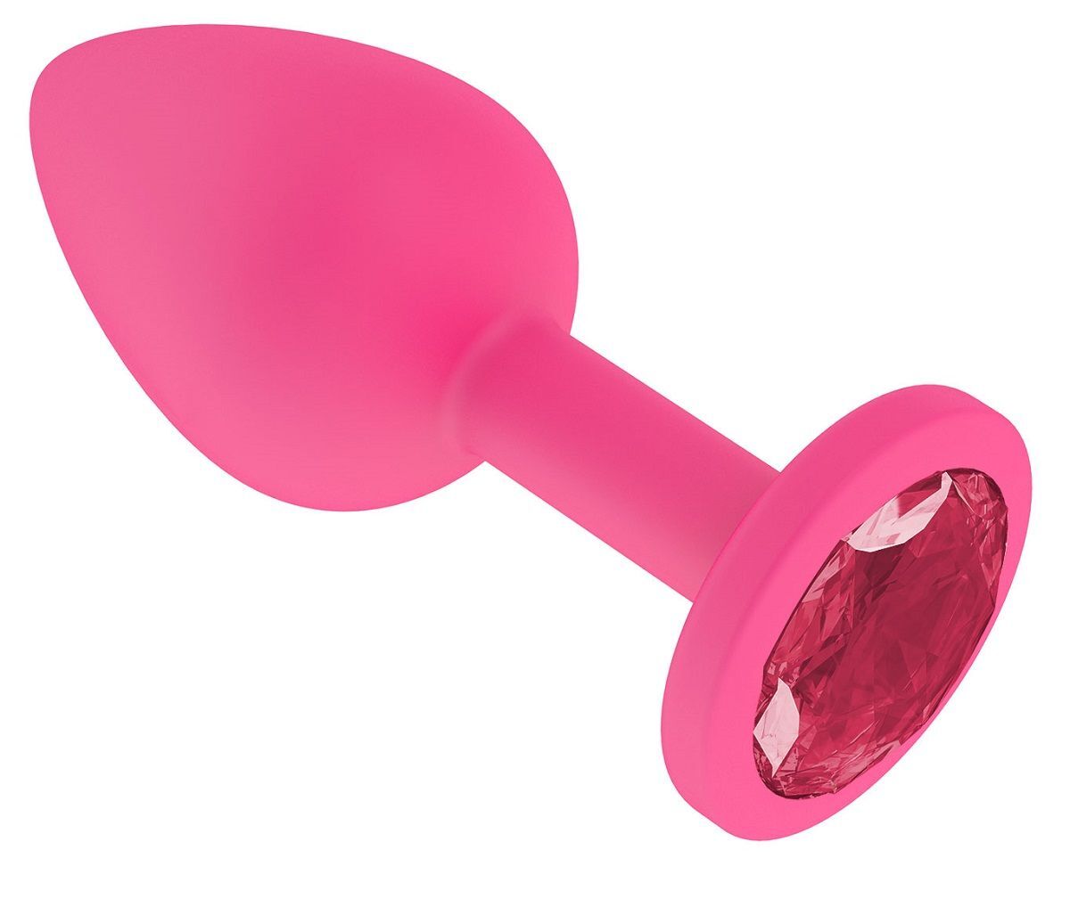 Розовая анальная втулка с малиновым кристаллом - 7,3 см.