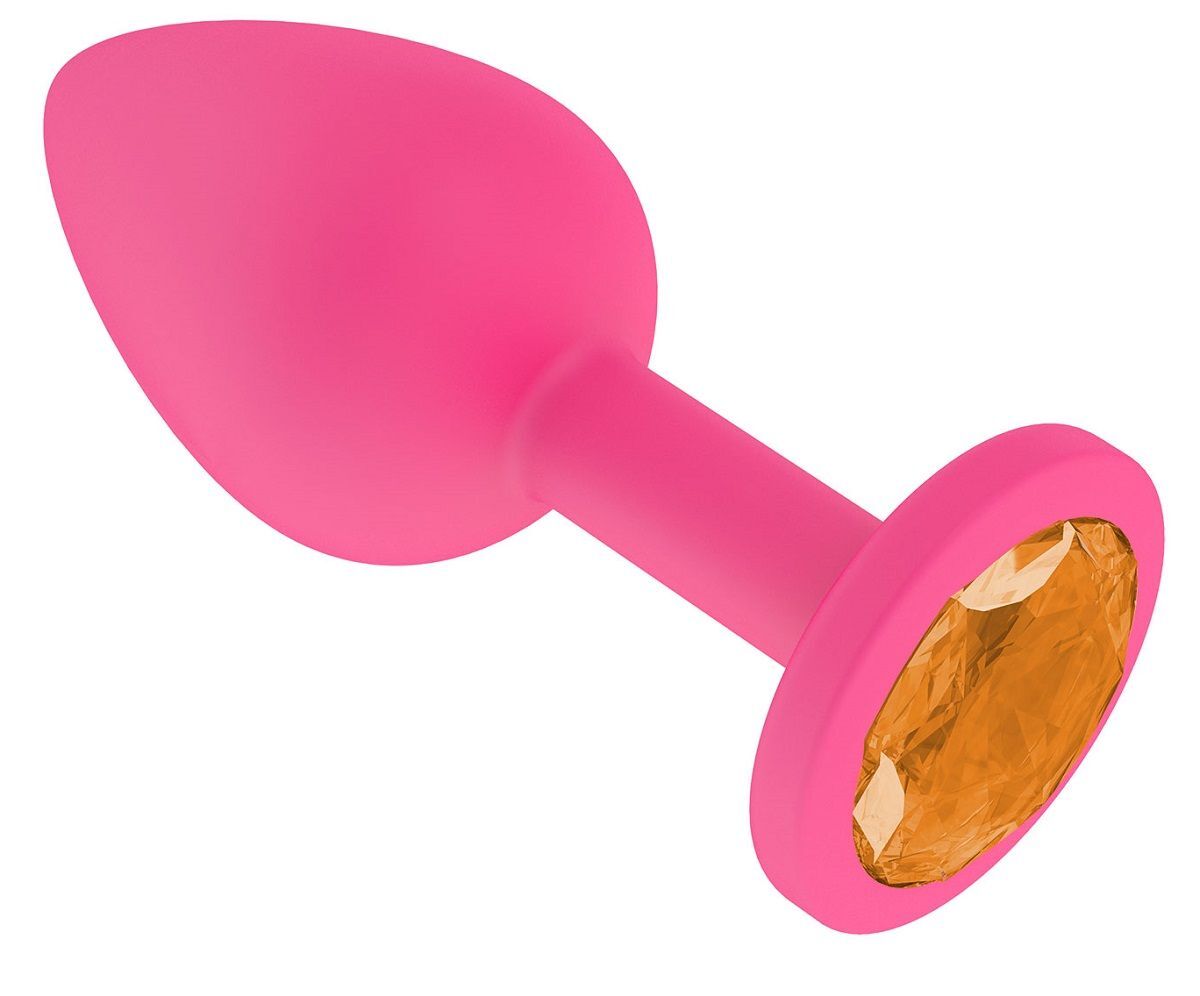 Розовая анальная втулка с оранжевым кристаллом - 7,3 см.