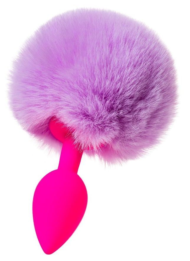 Розовая анальная втулка Sweet bunny с сиреневым пушистым хвостиком