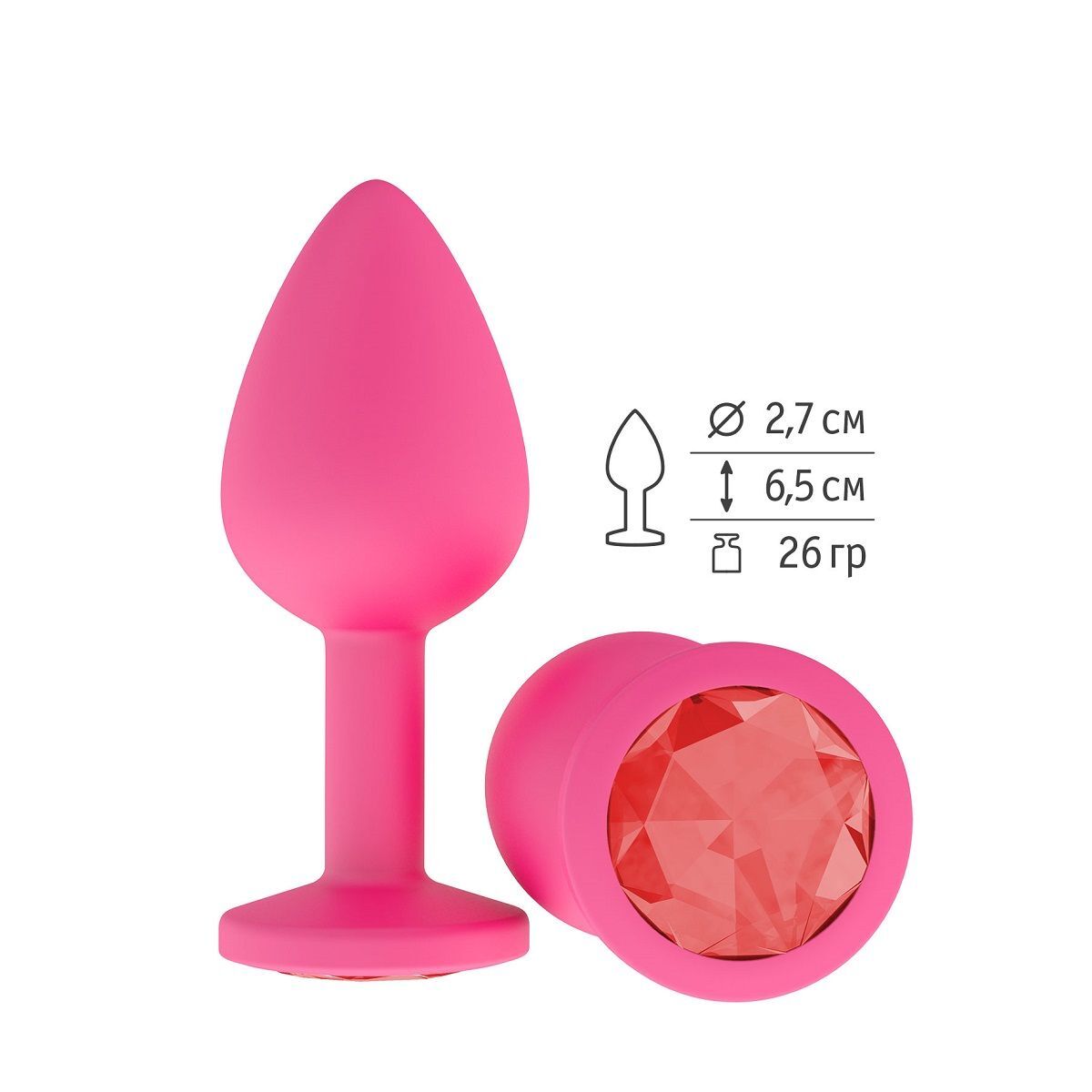 Гладенькая силиконовая пробка с кристаллом в ограничительном основании. Рабочая длина - 6,5 см. Вес - 26 гр.