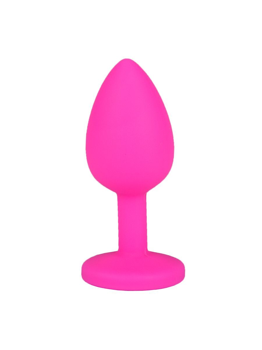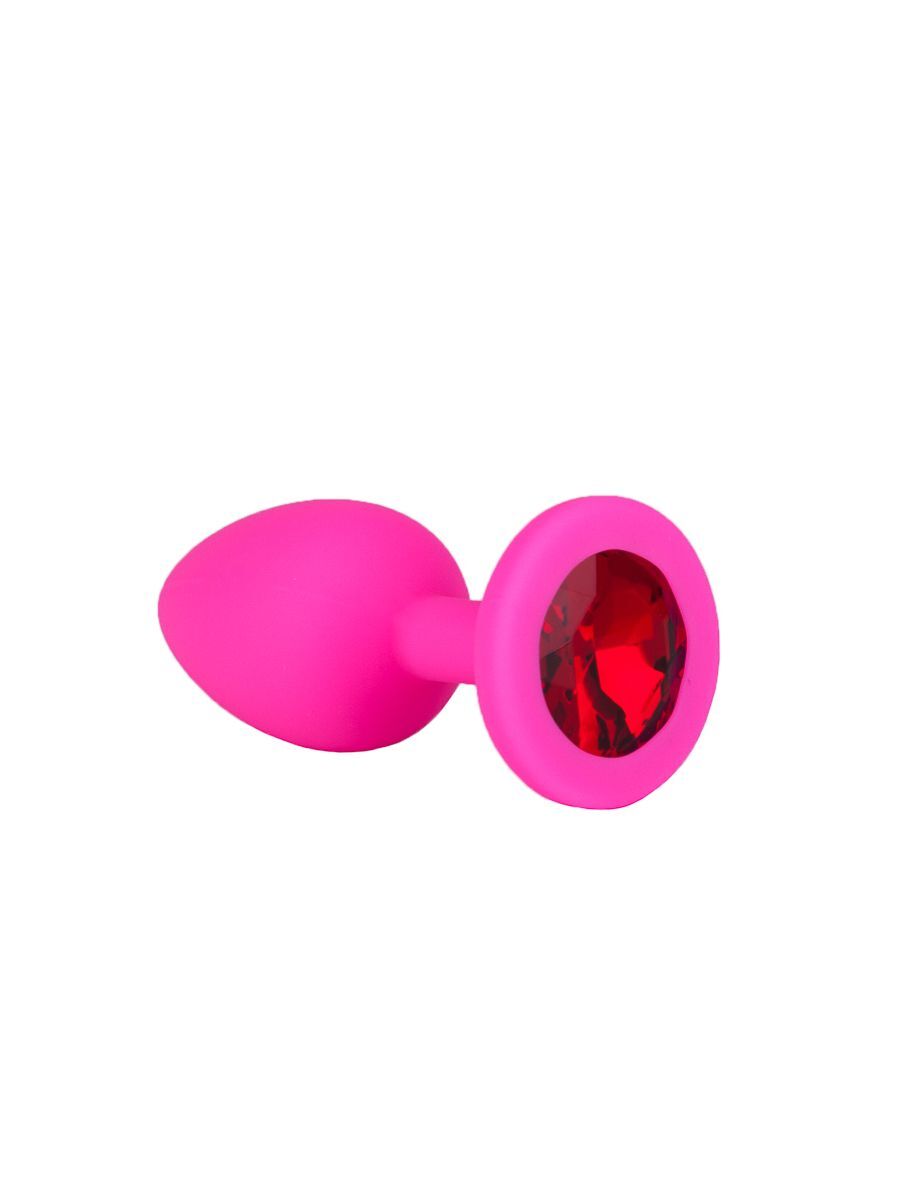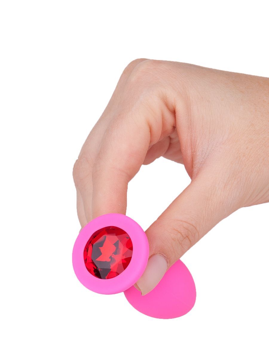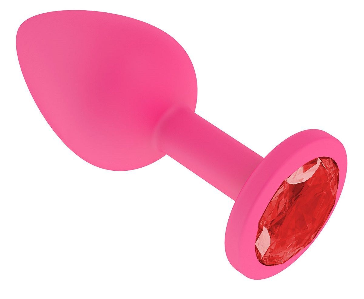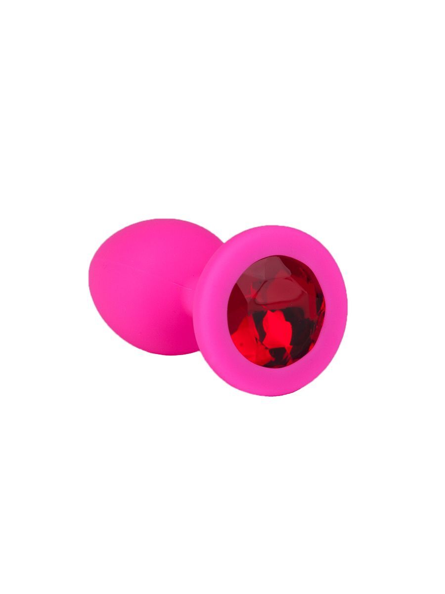 Розовая силиконовая анальная втулка с красным кристаллом - 7,3 см.