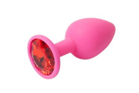 Розовая силиконовая пробка с красным кристаллом - 8,2 см.