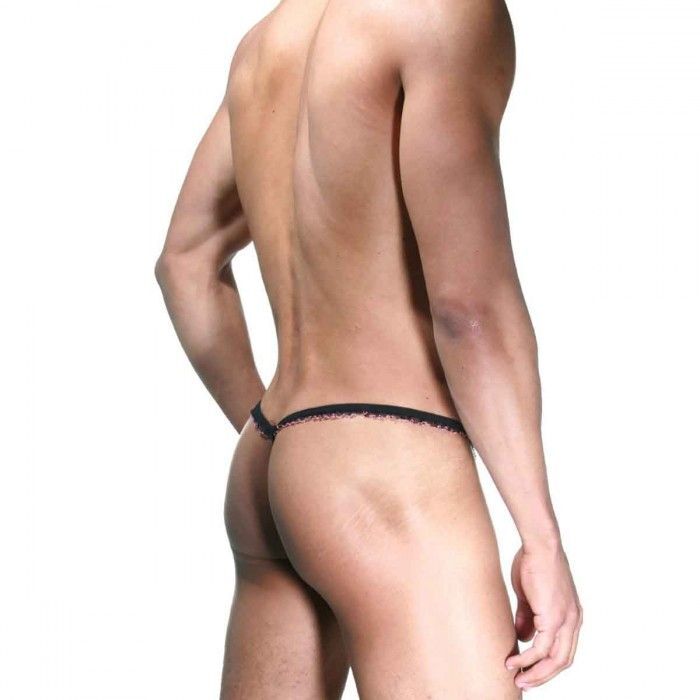 Розово-черные трусы-стринги с рюшей