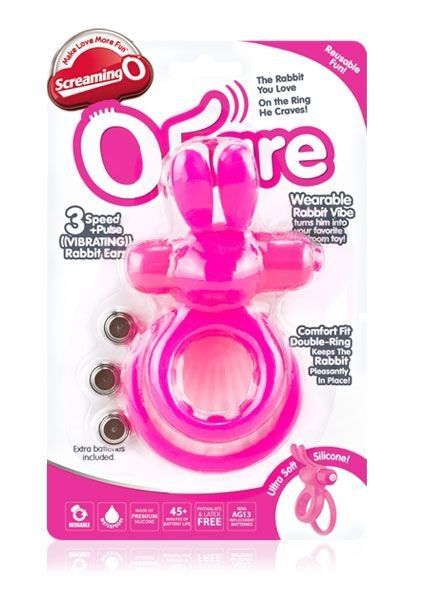 Силиконовое кольцо на пенис с вибропулей от Screaming O. Имеет 3 скорости вибрации и зону для стимуляции клитора. Работает от батареек AG13 (в комплекте) до 45 минут.