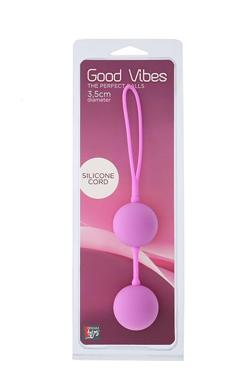 Розовые вагинальные шарики на силиконовой связке GOOD VIBES THE PERFECT BALLS PINK. Внутри каждого шарика, выполненного из анодированного пластика, имеется металлический шарик для смещения центра тяжести.