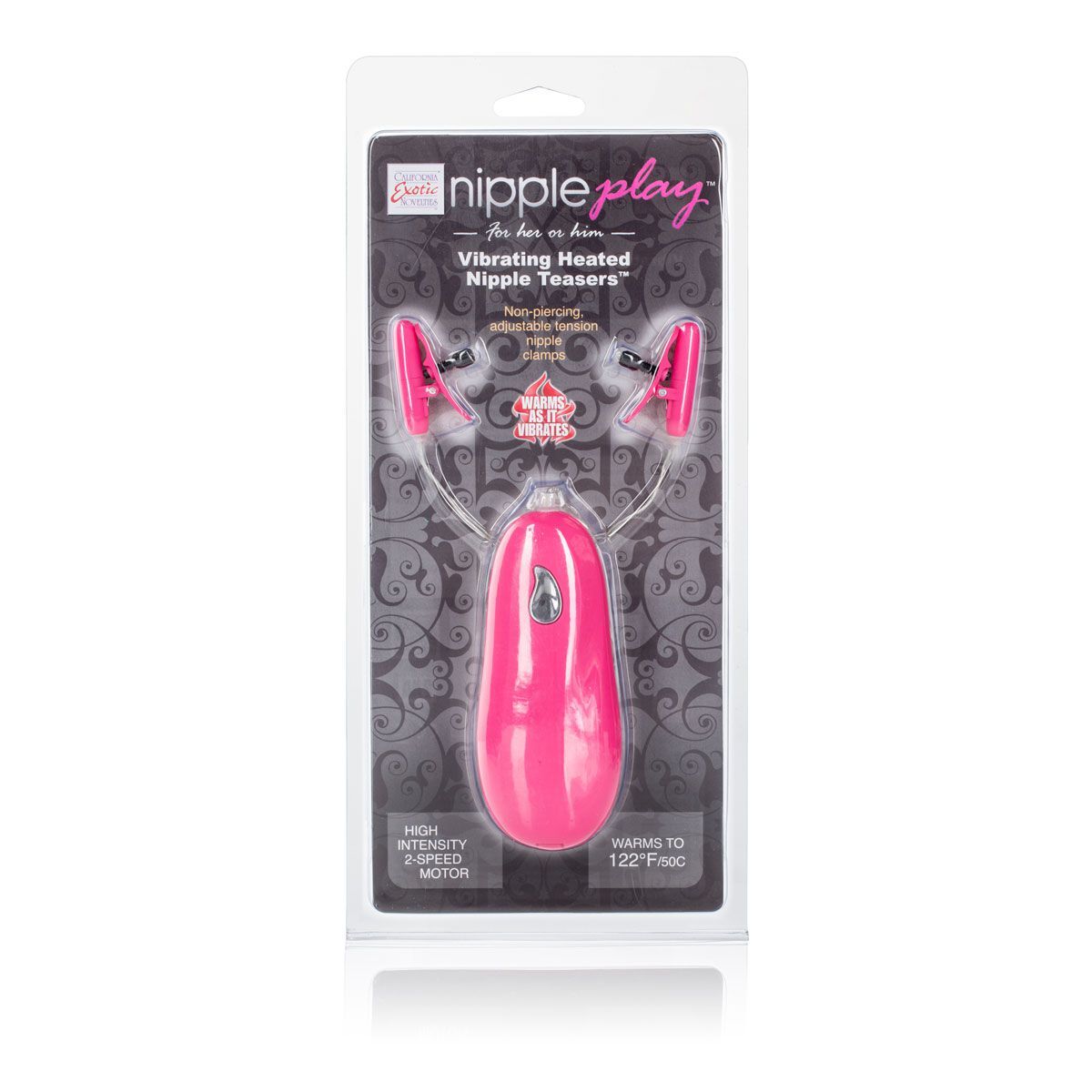 Зажимы на соски Nipple play с вибрацией - пикантное украшение и незабываемое наслаждение дерзкой соблазнительницы. Сексапильна, привлекательна и наполнена приятным наслаждением. Зажимы с шелковистым покрытием оснащены регулируемыми винтами, которые позволяют настроить давление на сосок. Интенсивная вибрация затрагивает каждую клеточку и уносит на вершины блаженства. Ласковое тепло обволакивает всю чувствительную зону, нагревается до 40 градусов. Две скорости вибрации, простое управление одной кнопкой.