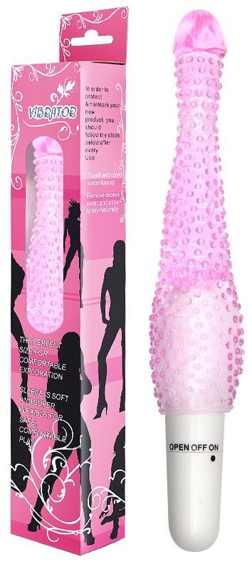 Анальный вибратор неправильной формы, покрытый пупырышками. Виброэлемент находится в основании и управляется поворотом ручки.