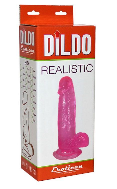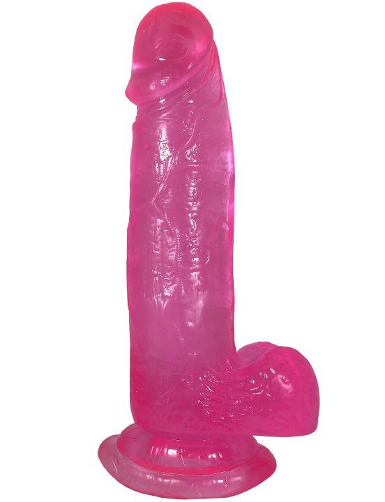 Розовый фаллоимитатор с мошонкой на присоске - 20,5 см.