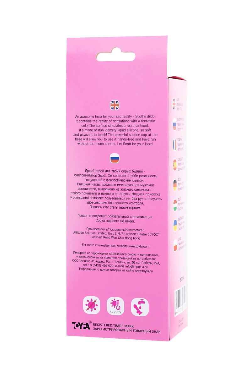 Яркий герой для твоих серых будней - фаллоимитатор Scott. Он сочетает в себе реальность ощущений с фантастическим цветом. Внешняя часть, идеально имитирующая мужское достоинство, выполнена из жидкого силикона — такого приятного и нежного на ощупь. Мощная присоска у основания позволит пользоваться им без рук и получать удовольствие без лишнего контроля. Позволь ему стать твоим героем. Рабочая длина - 15,5 см.