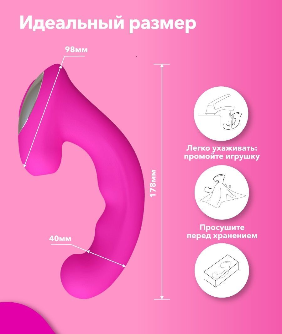 Игрушка-ХИТ для любительниц оральных ласк! Модель, в которой прекрасно сочетаются вакуумная стимуляция клитора и вагинальная вибрация. Чем хороша игрушка: Функциональность. 10 сосательных функций и 8 вариантов вибрации позволят получить максимум удовольствия и простимулировать точку G. Вы можете использовать вакуум для стимуляции не только клитора, но и сосков. Ощущения от нежного посасывания просто сносят крышу! Внешний вид. Эта модель мало похожа на интимную игрушку. У неё яркий цвет и интересный дизайн. Материал. Стимулятор сделан из безопасного гипоаллергенного силикона премиум-класса. Он не вызывает раздражения и очень приятен на ощупь. Это очень важно, так как вибратор позволяет вам проявить фантазию и использовать его одновременно для клиторальной и вагинальной стимуляции. Бесшумность. Сатисфакер практически бесшумный, не громче работающего системника. Вы, получающая от него удовольствие, будете шуметь намного больше. Водонепроницаемость IPX7. Это значит, что игрушку можно погружать на глубину до 1 метра на полчаса и смело использовать под душем. Зарядка. Заряжается игрушка от любого устройства, имеющего USB вход. До часа работы на одном заряде. Сатисфакер Amante станет приятным подарком для любой девушки, которой не чужды эксперименты! Ширина - 4 см.