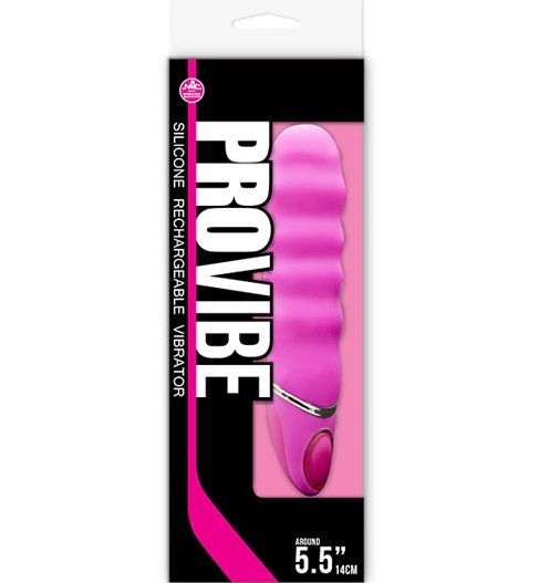 Розовый перезаряжаемый вибратор PROVIBE с волнами на стволе. Имеет 10 режимов вибрации.