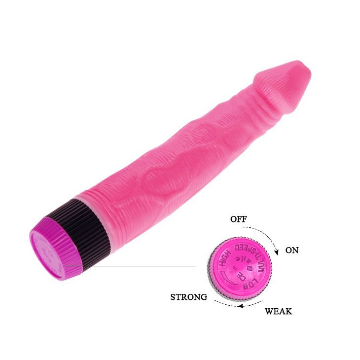 Вибромассажёр розового цвета с рельефной поверхностью из материала хорошего качества. Полное отсутствие пор! Полное отсутствие запаха! Гипоаллергенен! Моментальное достижение оптимальной температуры, которая сохраняется не обходимое количество времени. Упругая шелковистая поверхность. Супер современный мощный, беззвучный мотор! Рабочая длина - 19 см.