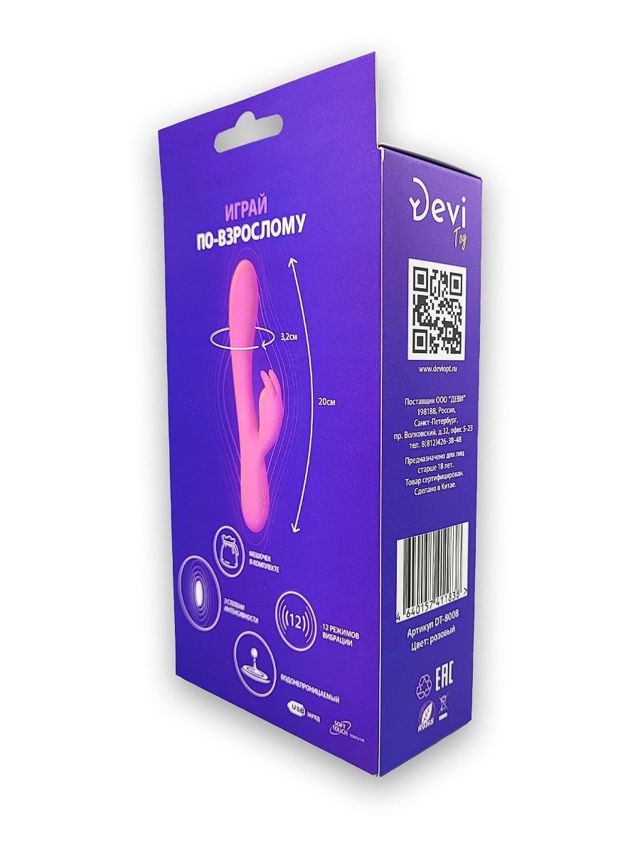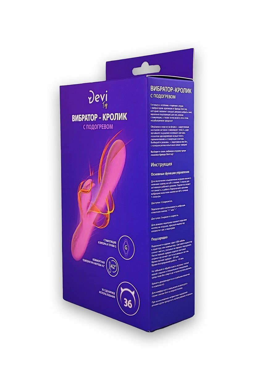 Розовый силиконовый вибратор-кролик с функцией подогрева. Имеет 12 режимов вибрации и 3 режима интенсивности. Подогрев до 42 градусов. Водонепроницаемый и перезаряжаемый. В комплекте мешочек для бережного хранения.
