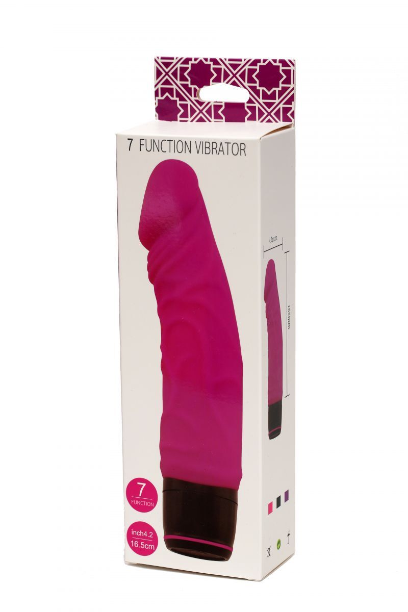Вибромассажёр имеет форму члена. Необычайно приятный, рельефный, выполненный из высококачественного силикона , передающий эффект мягкой реалистичной текстуры кожи, не имеет швов. Виброэлемент расположен по всей длине изделия. Вариации вибрации регулируются при помощи кнопки, расположенной в основании.