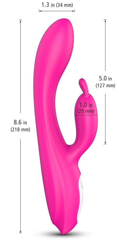 Вибромассажер с двойной стимуляцией и функцией подогрева, выполнен из гипоаллергенного медицинского силикона. Гибкая игрушка оснащена двумя независимыми моторами с 9 режимами вибрации и нагревом до 42 градусов. Девайс перезаряжаемый (USB-зарядное устройство в комплекте) и водонепроницаемый. Рабочая длина - 12,7 см.