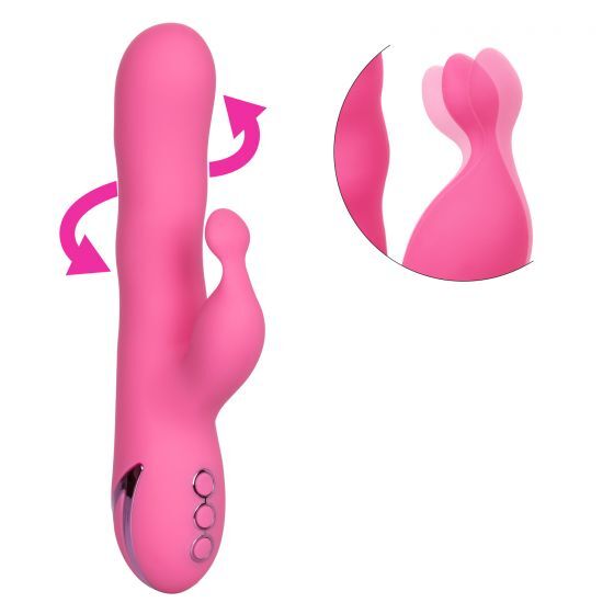 California Dreaming Santa Barbara Surfer – перезаряжаемый мультискоростной вибратор кролик из бесшовного материала с дополнительной обработкой. Вагинальный отросток у этой модели имеет «волновую функцию», по всей длине ствола. Мощный двигатель основного вала посылает рябь с тремя регулируемыми скоростями в самые чувствительные области. Клиторальный отросток с небольшим хвостиком на конце для более мощной точечной стимуляции имеет отдельный мощный виброэлемент, обеспечивающий 10 режимов интенсивной вибрации. Вибромассажер изготовлен из гипоаллергенного мягкого силикона премиум-класса безопасного для тела, не содержащего фталатов, обеспечивающего приятные и гарантированно безопасные тактильные ощущения. Идеально подходит для стимуляции точки G и всех стенок влагалища в сочетании с клиторальной стимуляцией. Управление осуществляется с помощью трех встроенных в основание кнопок. Чтобы включить или выключить игрушку, необходимо нажать и в течении трех секунд удерживать верхнюю кнопку питания. Имеется функция запоминания последнего выбранного сочетания. Доступна возможность блокировки, которая позволит предотвратить самопроизвольное включение игрушки во время путешествий. Вибромассажер заряжается через USB и может быть подключен практически в любом месте, просто подсоедините идущий в комплекте шнур к совместимому порту компьютера или USB-адаптера (приобретается отдельно), а противоположный конец к разъему у основания. Полная зарядка занимает 2,5 часа, ее достаточно для беспрерывной работы в течение 2,5 часов. Рабочая длина - 12 см. Длина клиторального отростка - 5,75 см., диаметр - 2,5 см.