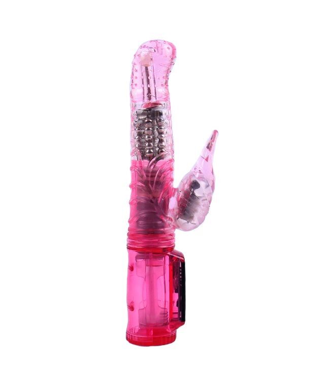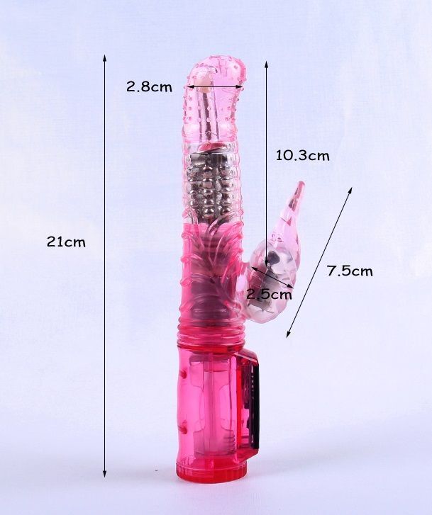 Розовый вибратор призван дарить наслаждение сладкими ритмами вибраций, стимулирующими вагину. Эротичное боковое ответвление предназначено для клиторальных оргазмов. В целом вибратор состоит из 2 моторчиков, которые умело распределяют 24 режима вибрации и ротации на два ствола. Вибратор управляется несколькими кнопками на ручке, Рабочая длина - 10,3 см.