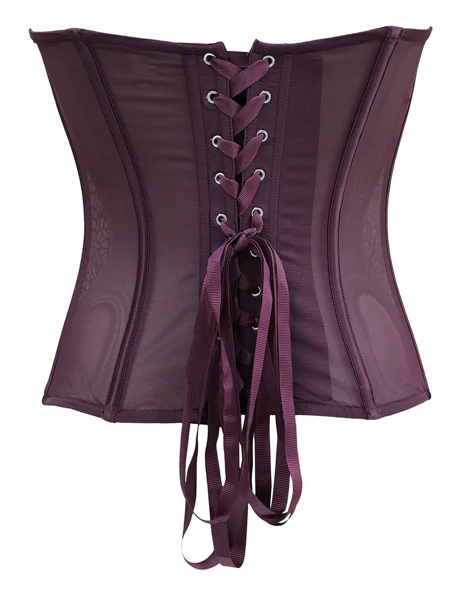 Сексуальный корсет из флокированной сетки. Рельефный крой деталей и вертикальные косточки по всей окружности подчеркивают линию талии, придавая фигуре форму песочных часов. Фронтальная часть изделия выполнена из сетки с флокированным флористическим орнаментом, с вертикальной застежкой на крючках. Задняя панель - из полупрозрачной сетки, с декоративной шнуровкой атласной лентой. Без бретелей.