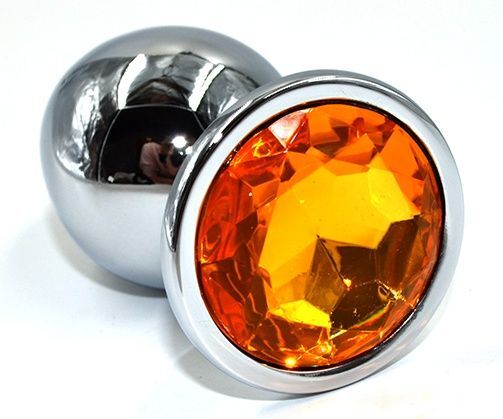 Серебристая анальная пробка из нержавеющей стали с желтым кристаллом - 10 см.