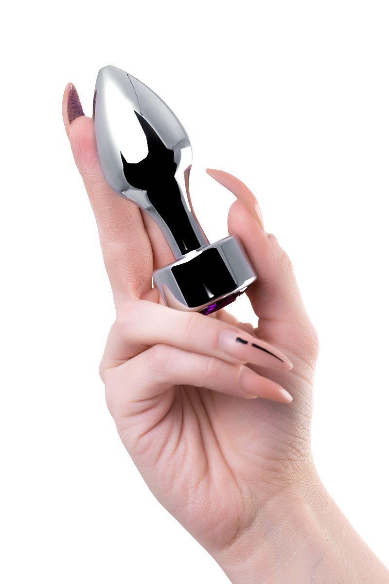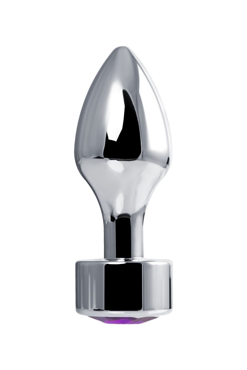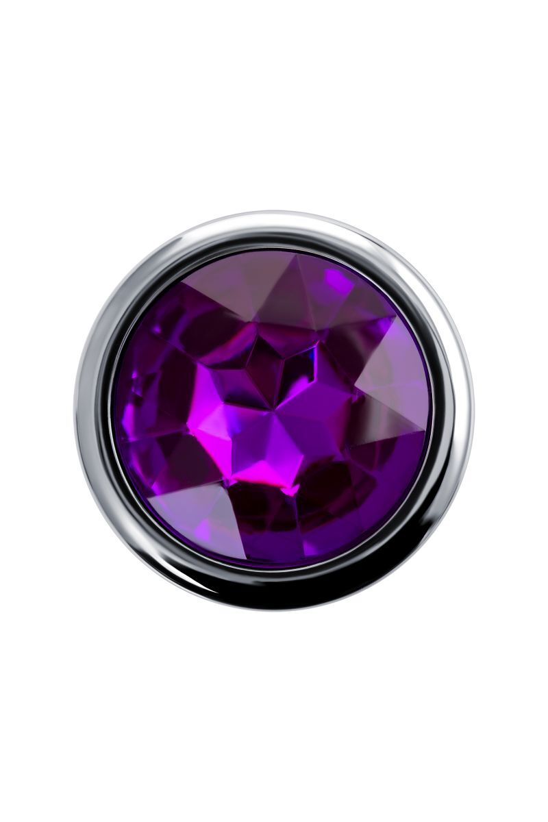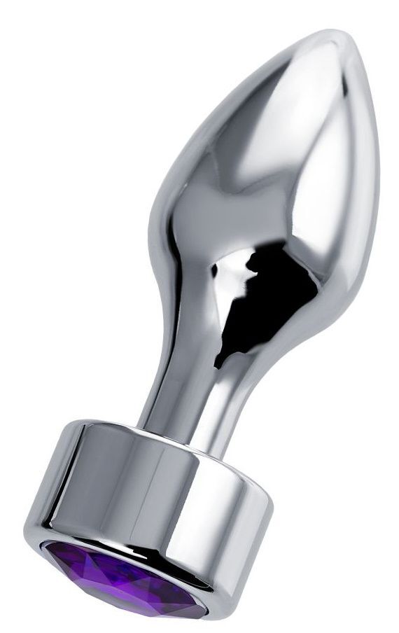 Серебристая анальная пробка с фиолетовым кристаллом - 9,5 см.
