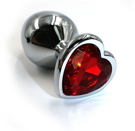 Серебристая анальная пробка с красным кристаллом-сердцем - 8,2 см.