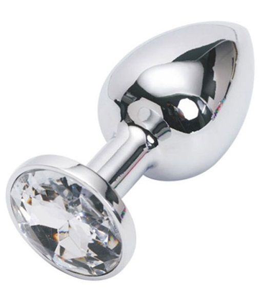 Серебристая анальная пробка с прозрачным кристаллом - 7,6 см.
