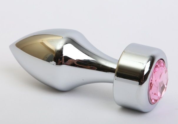 Серебристая анальная пробка с широким основанием и розовым кристаллом - 7,8 см.