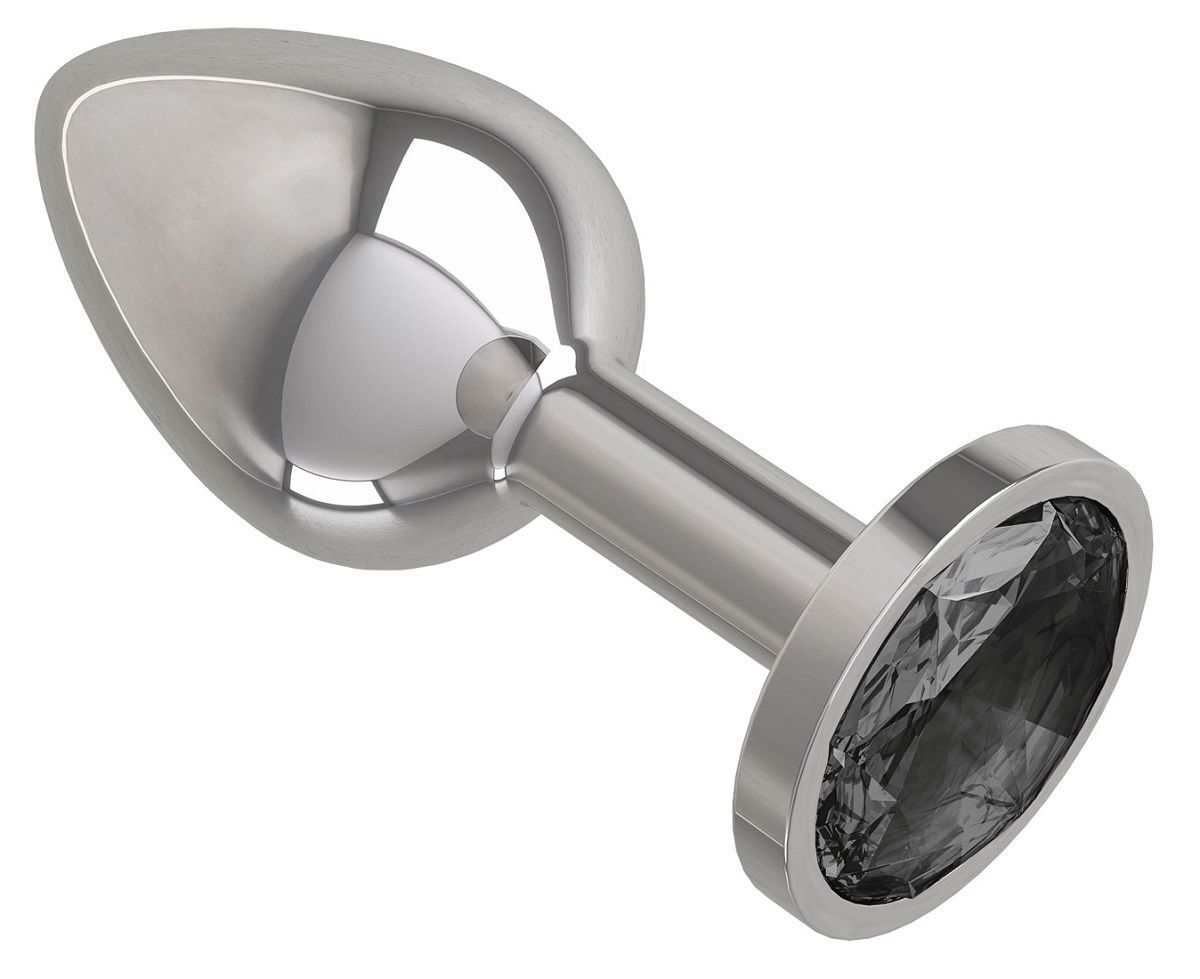 Серебристая анальная втулка с чёрным кристаллом - 7 см.